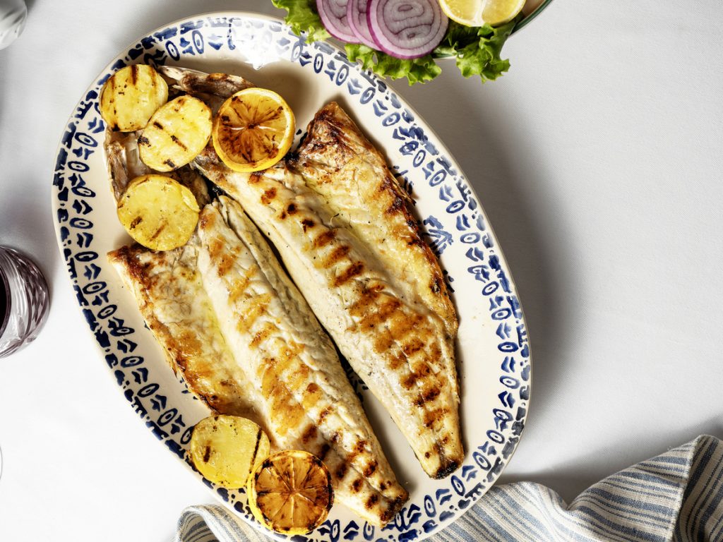 Prie šios žuvies patiekti galima pačių įvairiausių garnyrų. Prie jūrinio ešerio dera ne tik bulvės, bet ir karamelizuotos morkos, troškinti kalafiorai ar brokoliai, šiuo sezonu itin populiarios cukinijos. O jeigu mėgstate paeksperimentuoti, prie ešerio pasigaminti galite ir cukinijos „makaronų“, kurie – ne tik skanūs, bet ir sveiki.