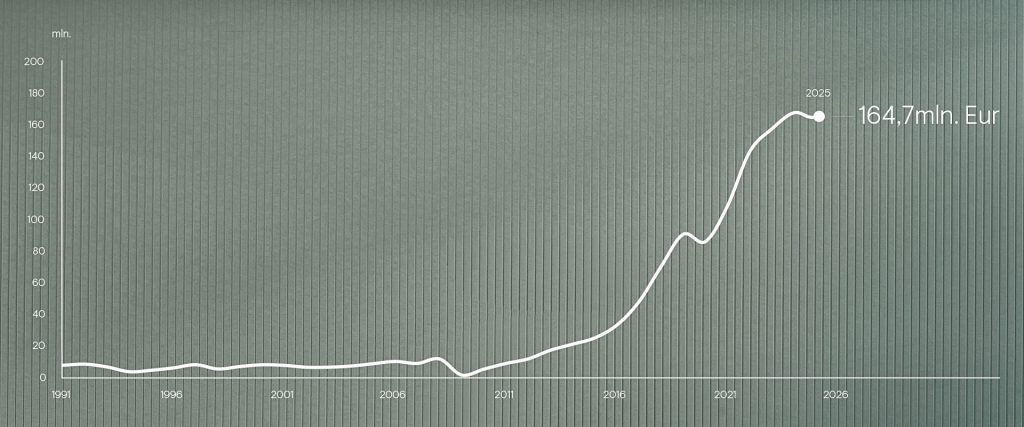 Kompanija džiaugiasi užbaigę metus stabiliai. Išlaikytos panašios apyvartos kaip ir 2024 m. – 2025 m. pasiekta 164,7 mln. Eur apyvarta, kai 2024 m. pardavimai siekė 168 mln. Eur.