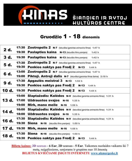 vilkmerge.lt neatsako už renginių pasikeitimus ar netikslumus informacijoje. Kilus klausimams konkrečios informacijos apie renginį teiraukitės pas renginio organizatorius.Renginių kalendoriuje gali būti pateikta ne visa informacija apie tą dieną vyksiančius renginius, kalendorius taip pat gali būti nuolat papildomas.