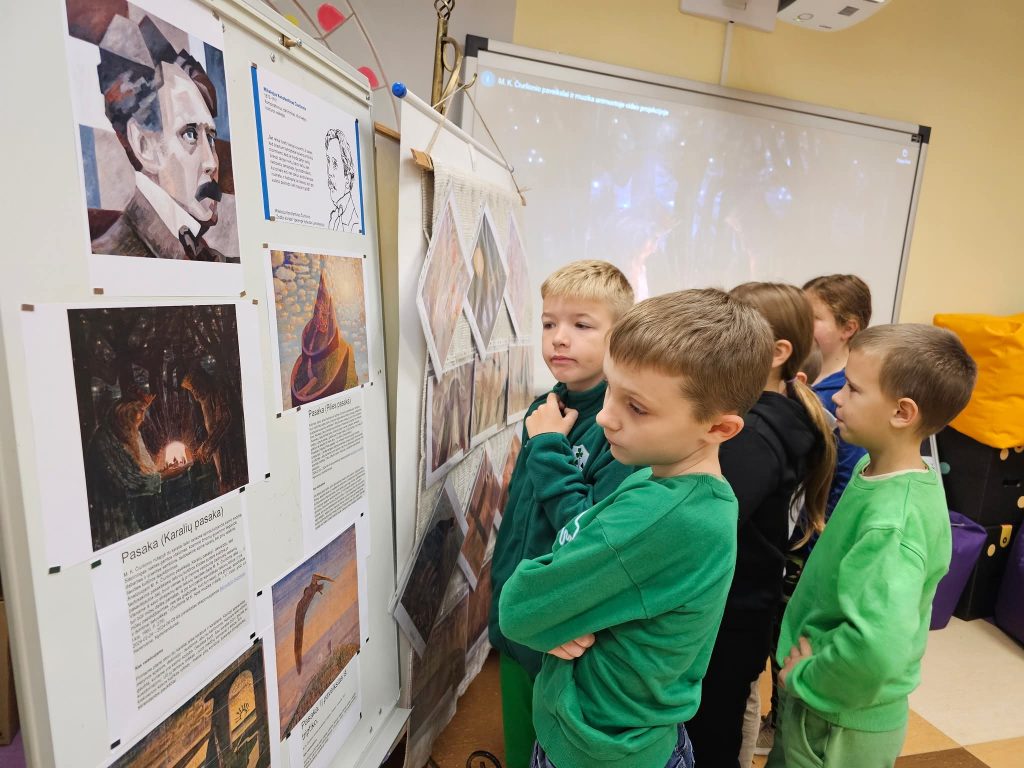 Atskleisti kūrybiškumą mokyta ir per trečiokų pažintį su garsiausiu šalies dailininku bei kompozitoriumi. Trečiokai, susipažinę su M. K. Čiurlionio kūryba, dalyvavo edukacijoje, gamino skirtukus ir šventė kompozitoriaus bei dailininko gimtadienį skanaudami pyragą. Aštuntokai turėjo galimybę pasitikrinti, ar gerai pažįsta genijaus darbus. Įspūdingą greitį dėliojant ,,Pilies pasaką” demonstravo Saulė Butvilavičiūtė ir Midas Bandorius. Nepralenkiami įvardijant M. K. Čiurlionio paveikslų pavadinimus buvo Adrijus Vyšniauskas ir Paulius Skadeilis.