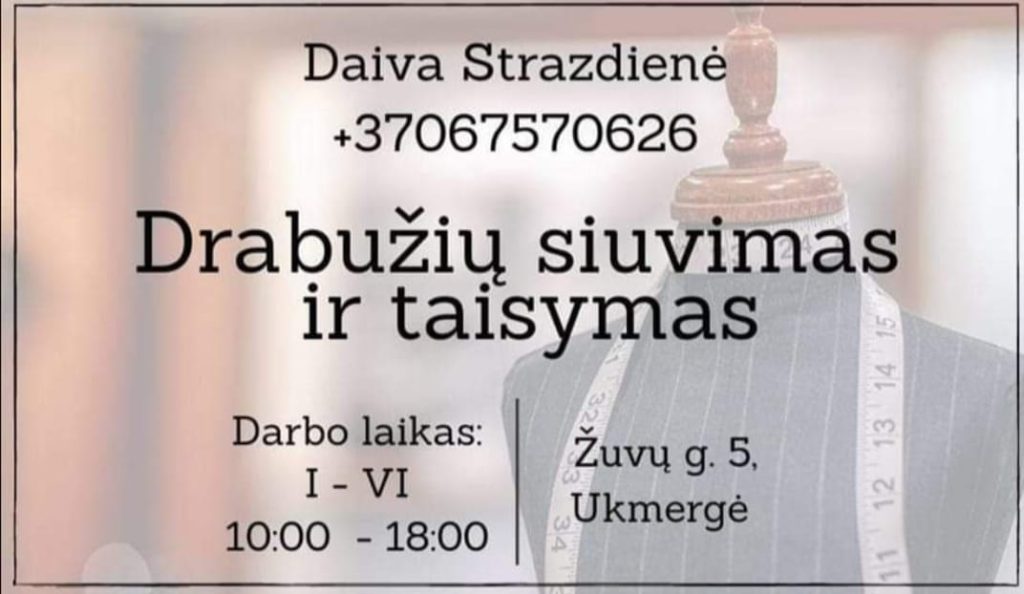 Darbo laikas: pirmadieniais – ketvirtadieniais 9 – 17 val., penktadieniais 9 – 15.45 val.