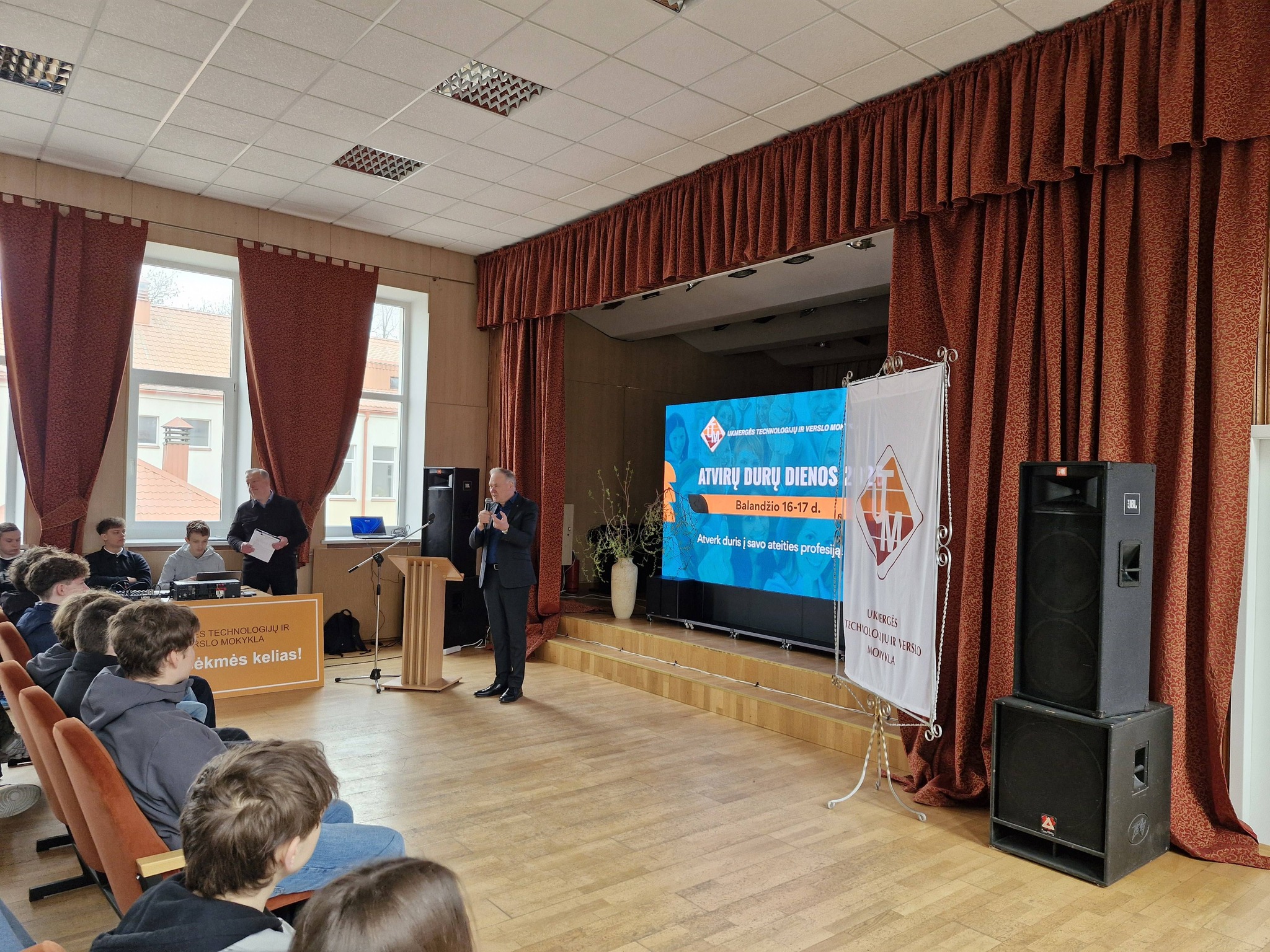 Balandžio 16–17 dienomis Ukmergės technologijų ir verslo mokykloje vykusiose atvirų durų dienose lankytojai galėjo susipažinti su mokymo programomis, išbandyti profesijas ir gauti konsultacijas. Renginį praturtino partneriai – UAB „Narbutas“ ir UAB „Stansefabrikken“, kurie dalijosi savo patirtimi ir žiniomis. Daugiau čia.
