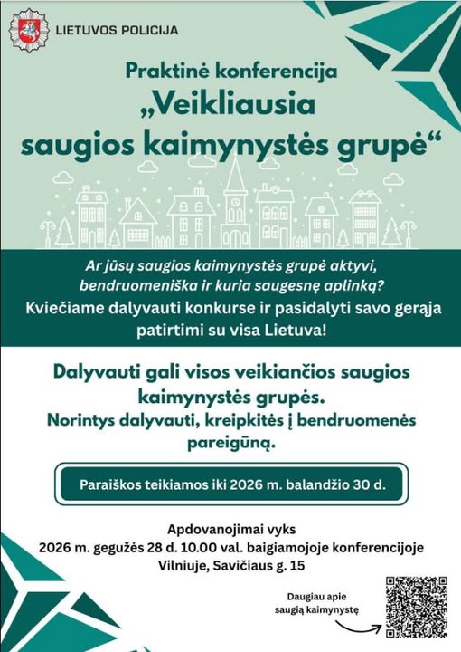 Daugiau informacijos: Bendruomenės pareigūnė Daiva Novikienė: daiva.novikiene@policija.lt, +370 612 75797