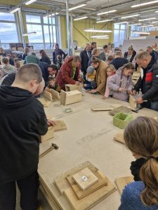 Ukmergės technologijų ir verslo mokyklos sporto komplekse susibūrė miesto ir rajono šeimos, kurios kartu gamino inkilus paukščiams. Vardiniai inkilai netrukus bus iškelti įvairiose vietovėse ir taps saugiais namais sparnuotiems gyventojams.