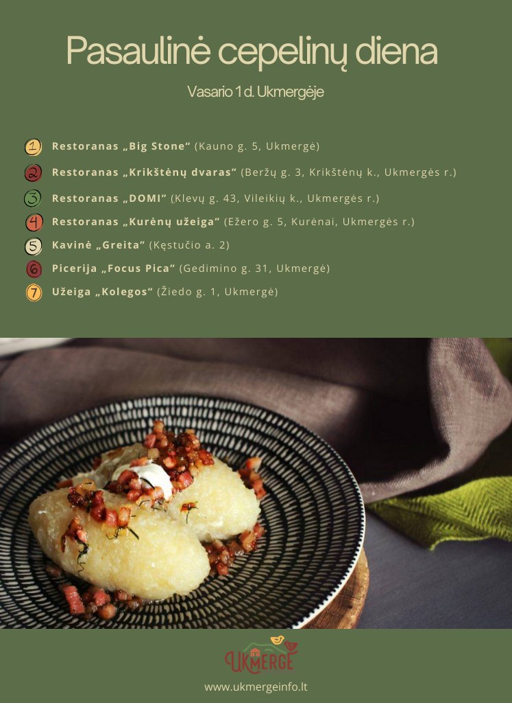 Nuo 2014 metų kiekvieną pirmąjį vasario sekmadienį minima Pasaulinė cepelinų diena. Ukmergiškiai taip pat kviečiami prisijungti.