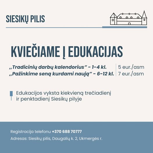 16. SIESIKŲ PILIS KVIEČIA Į EDUKACIJAS