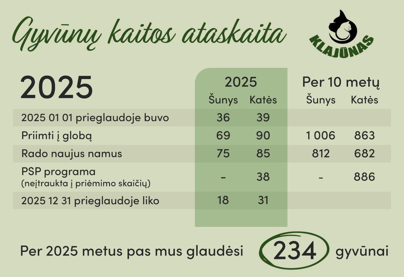 13. Ukmergės gyvūnų globos namai „Klajūnas“ pateikė gyvūnų kaitos ataskaitą už 2025 metus.