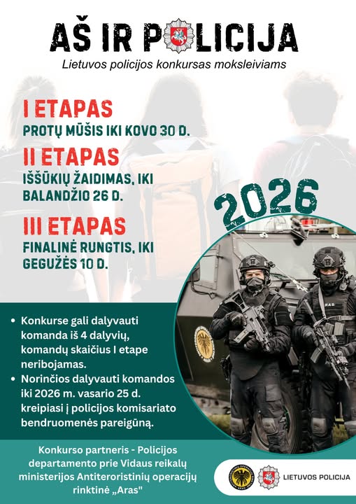 burtis į komandas ir dalyvauti konkurse „AŠ IR POLICIJA”.