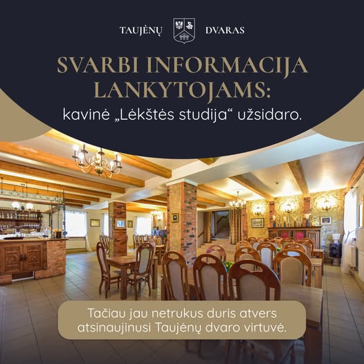 Kavinė „Lėkštės studija“ vasario 28-ąją dirbs paskutinę dieną. Tačiau netrukus lankytojų lauks atsinaujinusi Taujėnų dvaro virtuvė.