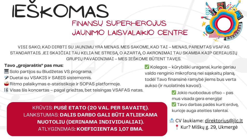 Ukmergės kultūros centras iš Lietuvos kultūros tarybos „Tolygios kultūrinės raidos“ programos gavo dalinį finansavimą projektams „Percussion Ukmerge 2026“, „Mūsų pulsas šiuolaikinio šokio ritmu“, „Paprastai nepaprasti susitikimai „Prie dvaro“ bei kino programai „KINAS+“.