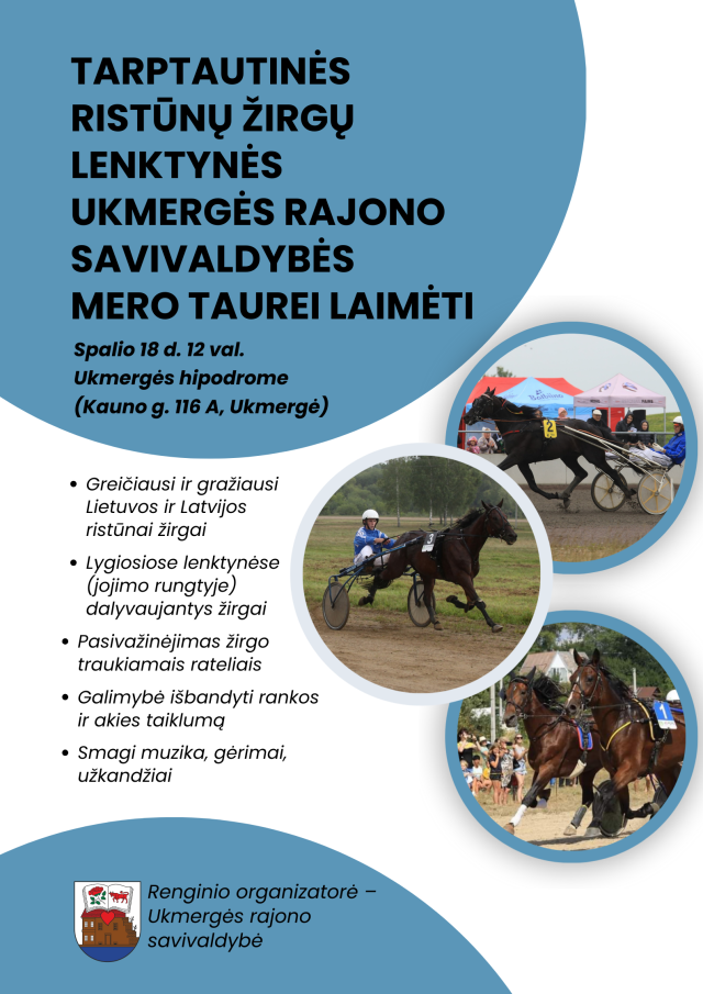 Pradinis Kultūra Anonsai Tarptautinės žirgų ristūnų varžybos Ukmergės Mero taurei laimėti KultūraAnonsai Tarptautinės žirgų ristūnų varžybos Ukmergės Mero taurei laimėti By vilkmerge.lt - 2025-10-05 0 FacebookTwitterPinterestWhatsAppEmailSpausdintiTelegramCopy URL