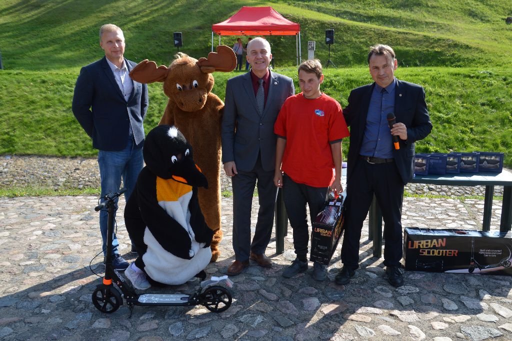 Po dviračių žygio mokyklų mokytojai ir mokiniai susirinko prie piliakalnio. Čia juos pasitiko Briedis ir Pingvinas. Po fotosesijos su personažais mokinius ir mokytojus sveikino rajono meras Rolandas Janickas. Kalbėdamas judumo savaitės dalyviams meras akcentavo, kad fiziškai aktyvus žmogus išlieka visuomet jaunas.