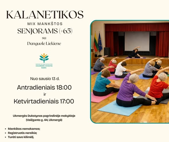 Kalanetika: Dukstynos pagr. mokykloje, pirmadieniais ir ketvirtadieniais 18 val.