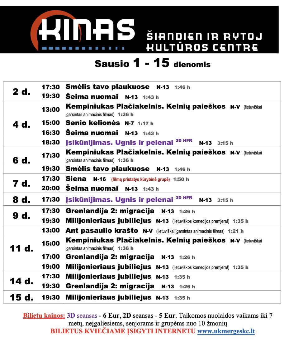 vilkmerge.lt neatsako už renginių pasikeitimus ar netikslumus informacijoje. Kilus klausimams konkrečios informacijos apie renginį teiraukitės pas renginio organizatorius.Renginių kalendoriuje gali būti pateikta ne visa informacija apie tą dieną vyksiančius renginius, kalendorius taip pat gali būti nuolat papildomas.