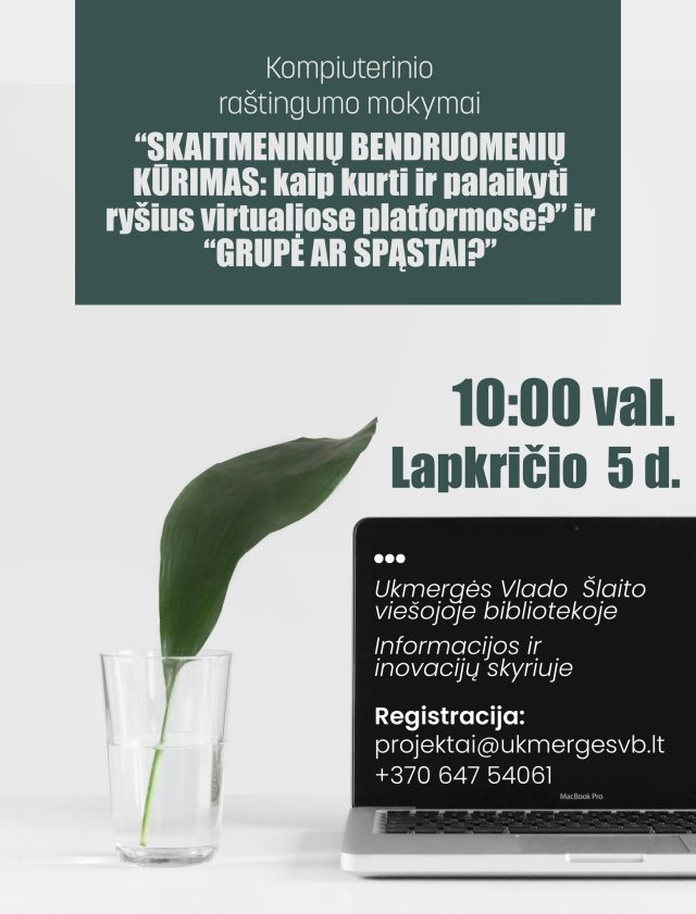 Pradinis Kompiuterinio raštingumo mokymai:"Skaitmeninių bendruomenių kūrimas" Kompiuterinio raštingumo mokymai:”Skaitmeninių bendruomenių kūrimas” By vilkmerge.lt - 2025-11-03 0 FacebookTwitterPinterestWhatsAppEmailSpausdintiTelegramCopy URL Kalendorius Kada: 2025-11-05, 10:00 2025-11-05T10:00:00+02:00 2025-11-05T10:15:00+02:00 Kur: Vl. Šlaito viešoji biblioteka Edukacijos