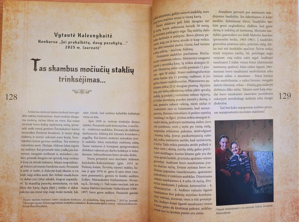 Žurnale „Lietuvos bajorų metraštis. Laikas ir likimai“ publikuotas Želvos pagr. mokyklos devintokės Vytautės Kalesnykaitės darbas „Tas skambus močiučių staklių trinksėjimas…“, kuris buvo įvertintas I-ąja vieta šalies mokinių konkurse. Darbas pasakoja apie audimą senovinėmis staklėmis ir įamžina unikalią autorės močiutės patirtį. Norintys pavartyti žurnalą, kviečiame apsilankyti Želvos pagr. mokyklos muziejuje.