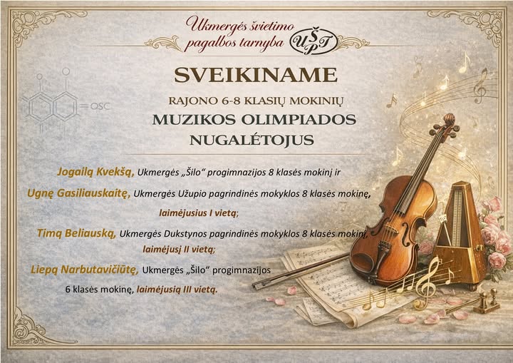 Vasario 5 d. Ukmergės Užupio pagrindinėje mokykloje vyko rajono bendrojo ugdymo mokyklų 6–8 klasių mokinių muzikos olimpiada, subūrusi jaunuosius muzikos mylėtojus iš viso rajono. Olimpiadoje dalyvavo mokiniai iš Ukmergės Užupio pagrindinės mokyklos, Ukmergės Dukstynos pagrindinės mokyklos, Ukmergės „Šilo“ progimnazijos, Ukmergės Senamiesčio progimnazijos.