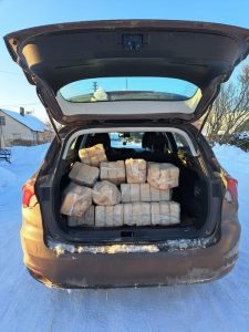 Ukmergės globos centro Šeimos gerovės skyriaus socialinės darbuotojos dėkoja įmonėms UAB „Užmojai su garantijomis“ ir UAB „Juostmedis“ už pjuvenų briketus Ukmergės mieste gyvenančiai šeimai.