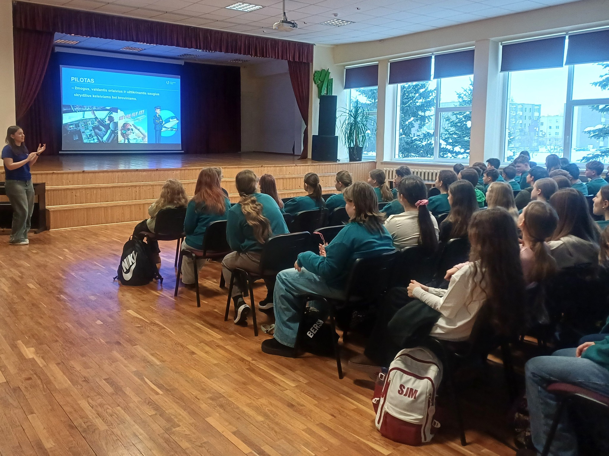 „Šilo“ progimnazijos šeštokai susitiko su Vilniaus Gedimino technikos universiteto studente Guste Mackonyte, kuri pristatė ateities profesijas ir studijų galimybes.