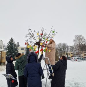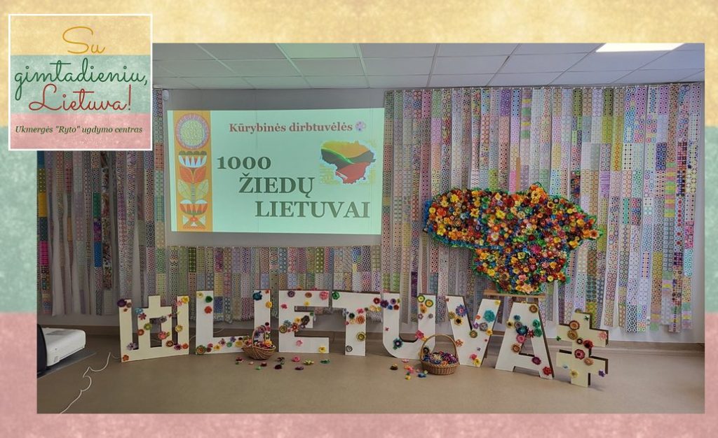 „Ryto“ ugdymo centro bendruomenė sukūrė 162 metrų tautinę juostą ir daugiau nei 1000 žiedų Lietuvos simboliams papuošti.