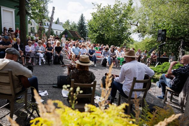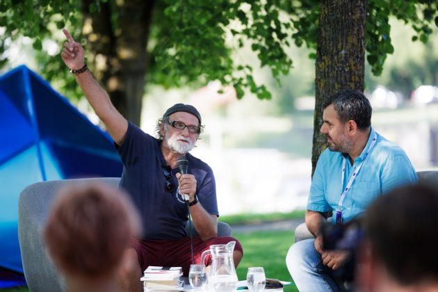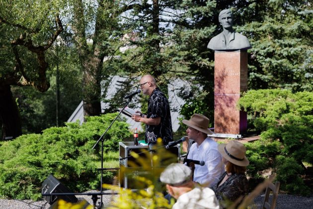 Ant Rašytojų kalnelio šeštadienio popietę skambėjo Liutauro Degėsio poetinė-muzikinė esė „Esu tas, kuris kalba“. Muzikavo Jonas Baltokas ir duetas „JieDu“ – Vilija ir Ramūnas Šepučiai.